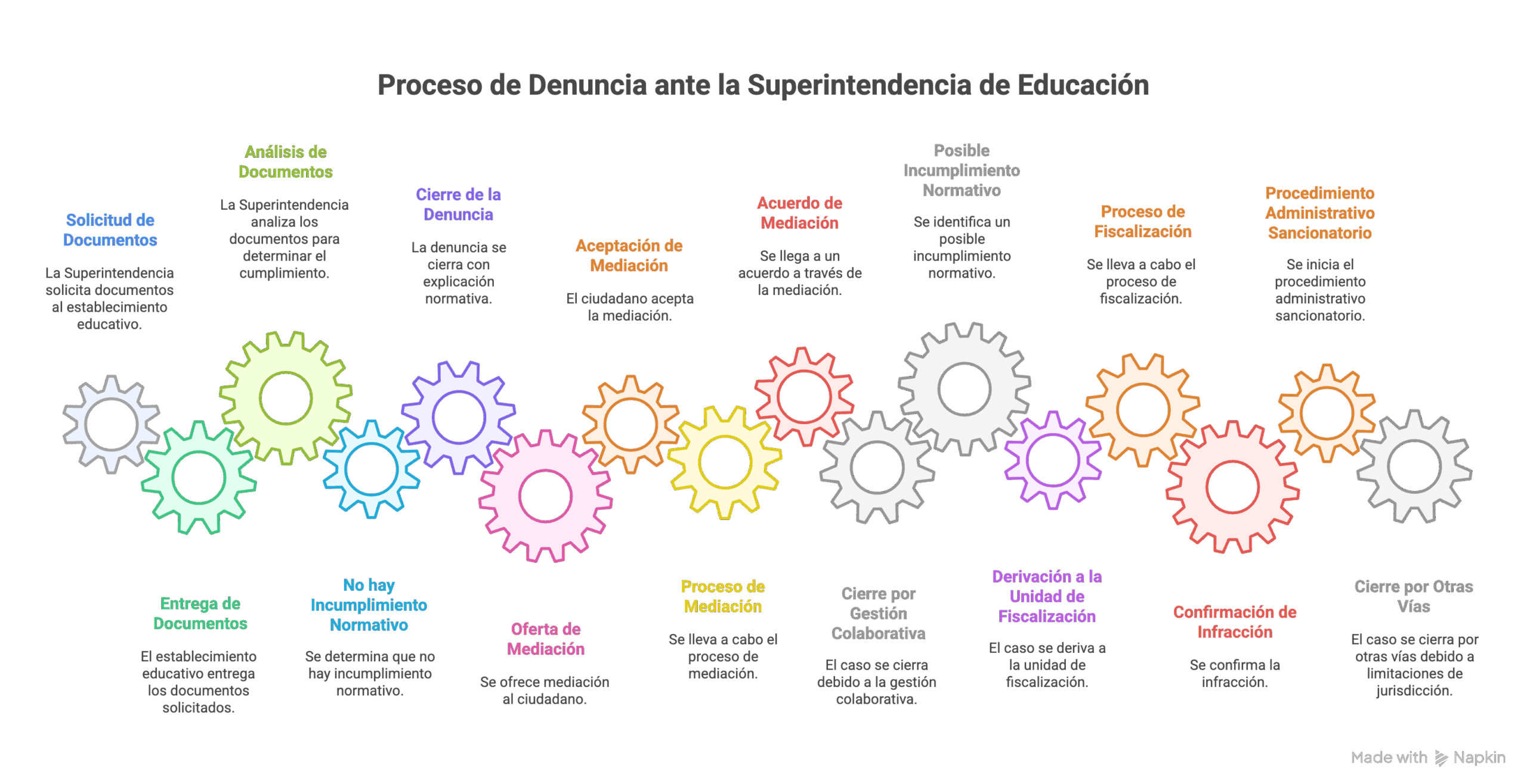 Allí, un inspector puede ir al colegio, entrevistar a testigos, revisar actas y levantar un acta con observaciones, clasificando la gravedad: leve, grave o muy grave.