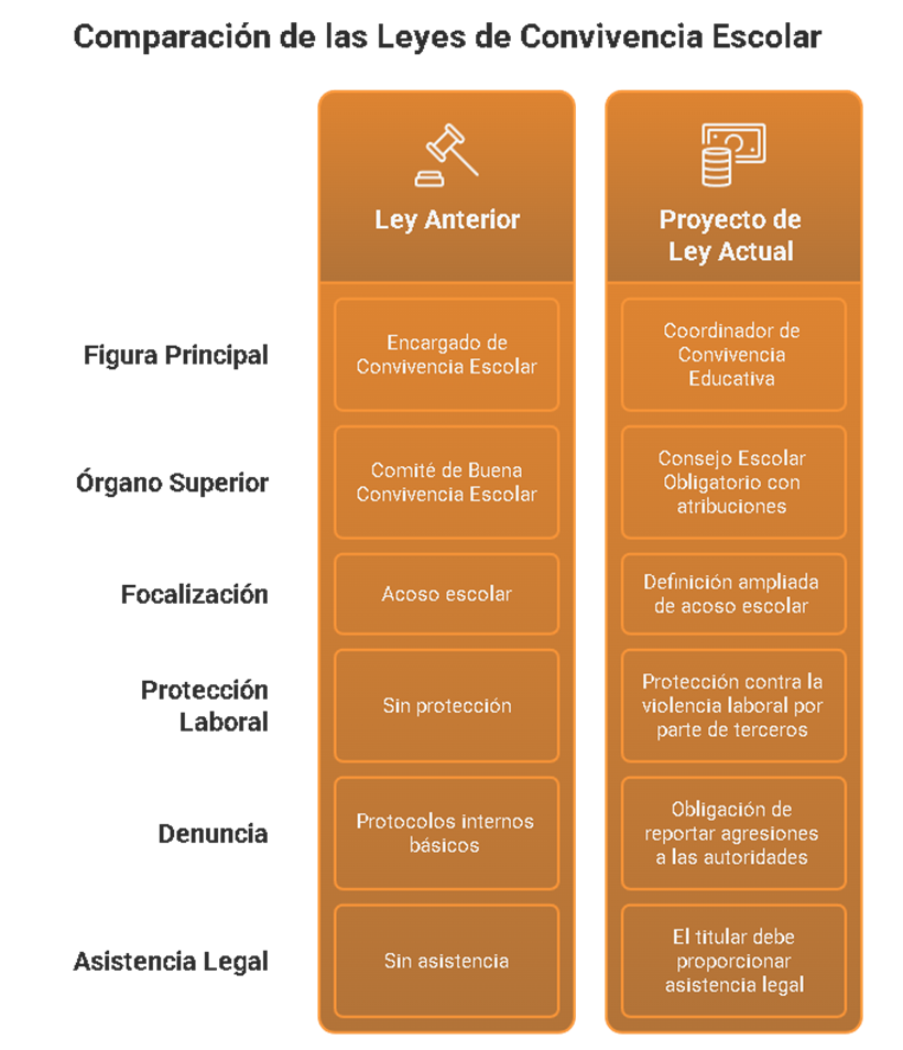 A continuación, se presenta una tabla comparativa de las disposiciones clave del proyecto y la ley anterior, la Ley N°20.536, para contextualizar la profundidad de la reforma.
